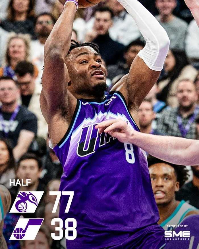 1月11日讯 爵士主场迎战黄蜂,上半场38-77落后39分,最多曾落后47分。