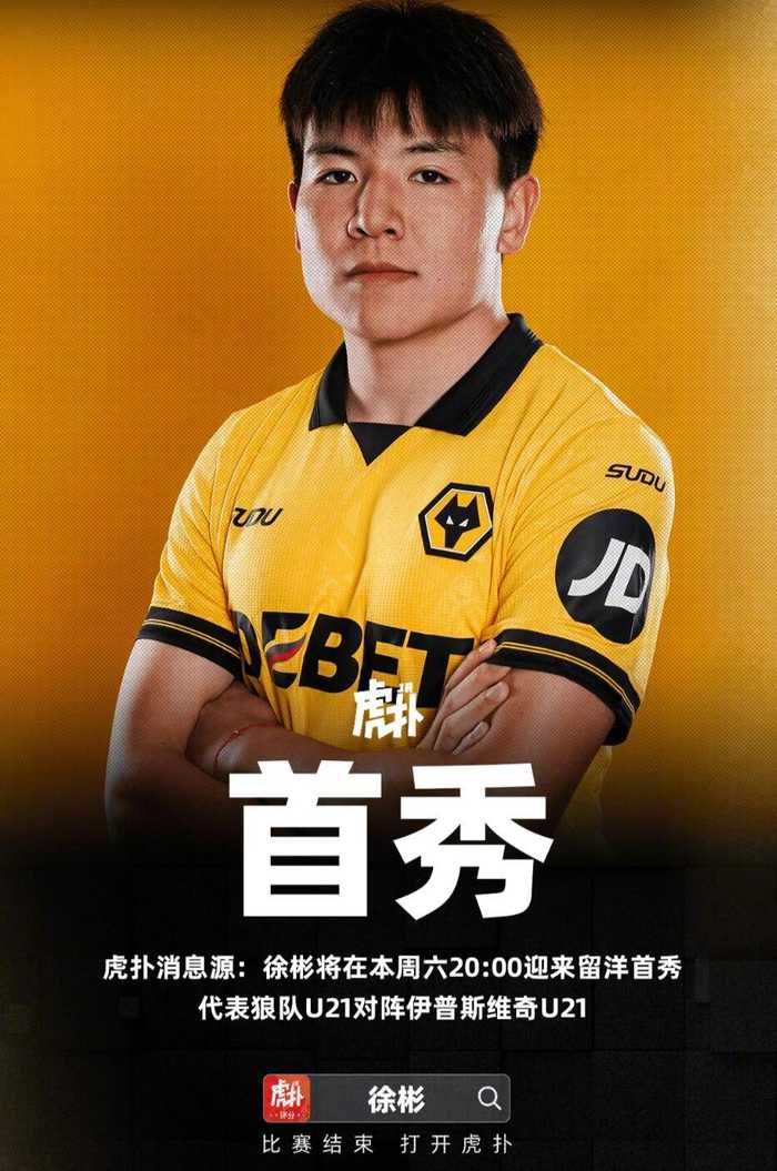 虎扑从消息源处独家获悉,北京时间2月7号20点,徐彬将在狼队u21对阵伊普斯维奇u21(PL2联赛,英超青年联赛)的比赛中,上演留洋首秀。
